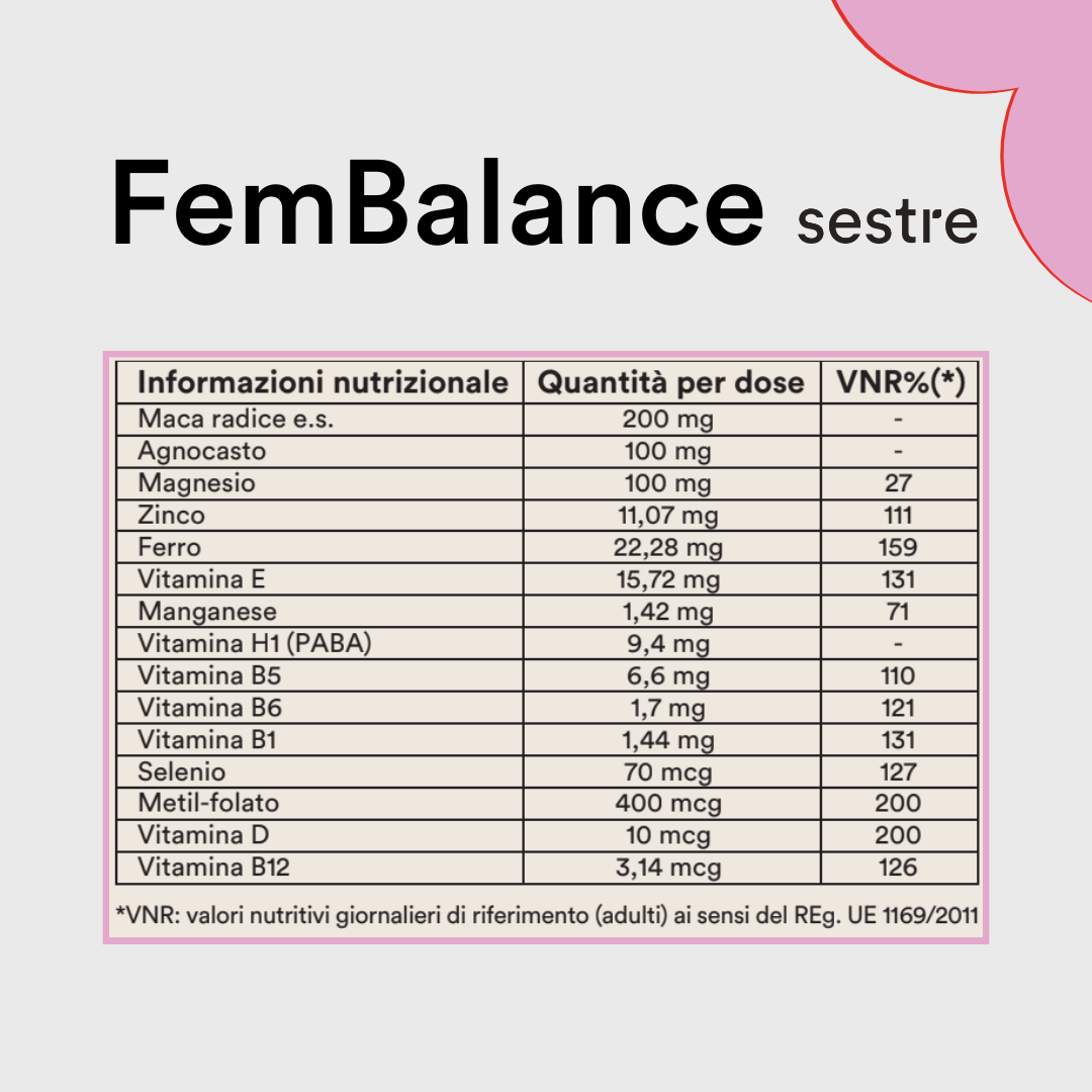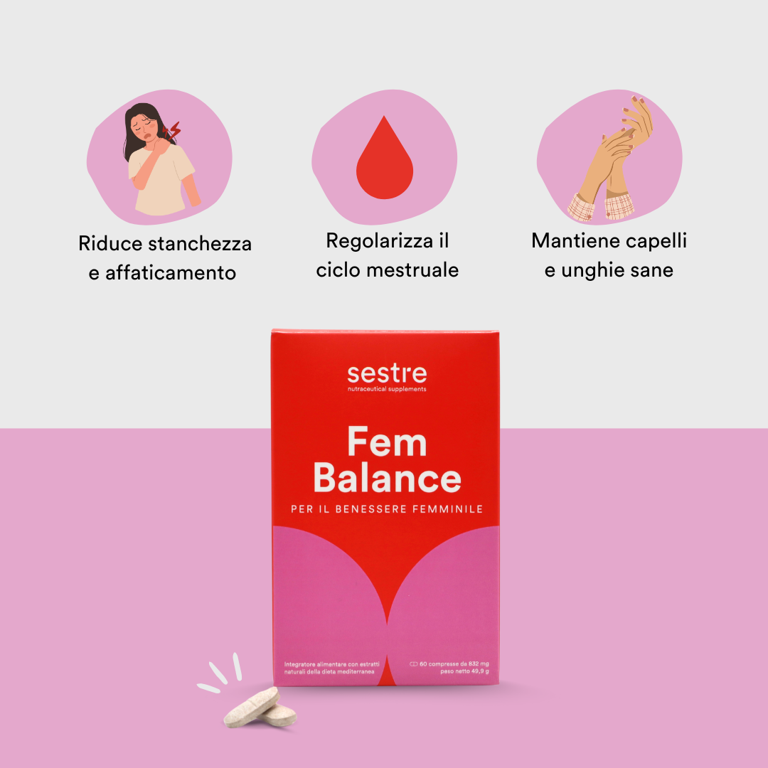 Ho iniziato ad assumere Fem Balance, perché insieme agli altri ingredienti, contiene Agnocasto, che aiuta a regolare il ciclo mestruale ma anche il mal di testa causato da iper prolattinemia. Sono molto contenta, perché già dopo 2 settimane di assunzione, i mal di testa sono diminuiti, ma mi sento molto più in forma e piena di energia grazie al giusto dosaggio di tutti gli altri componenti 💪🏻